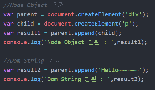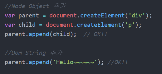 1. append()는 Node Object와 Dom String 을 추가할 수 있지만