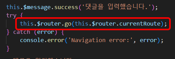 [Vue.js 에러] NavigationDuplicated (부제: 현재 경로에서 새로고침 하고 싶을 때 - router.reload, router.go, cur