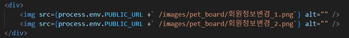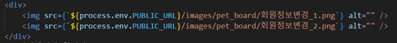 public 폴더 내의 이미지를 불러오기 위해 process.env.PUBLIC_URL를 사용하는 도중 특정 페이지만 src의 링크가 잘못 불러오는 문제가 생겼다.사용된 코드아예 처음 보는 변수라 process.env.PUBLIC_URL이 뭔지