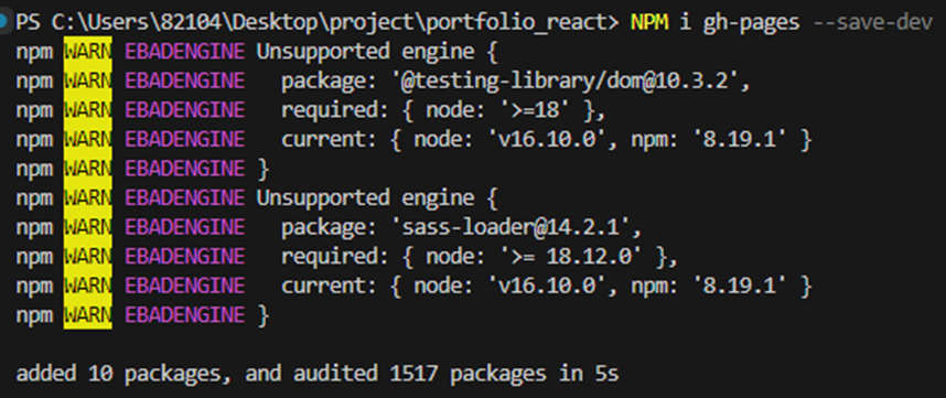 즉 npm run deploy 명령어를 입력하면
