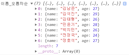 아무생각없이 이름 오름차순부터 나이 내림차순까지 한번에 코딩했다가 값이 전부 똑같아서 당황했다ㅋㅋㅠ