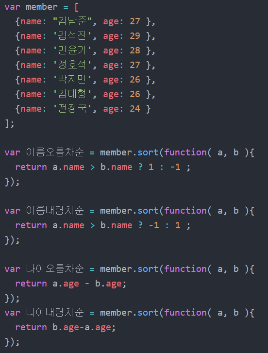 자바스크립트에서 제공해주는 배열안의 원소를 정렬해주는 내장함수이다.