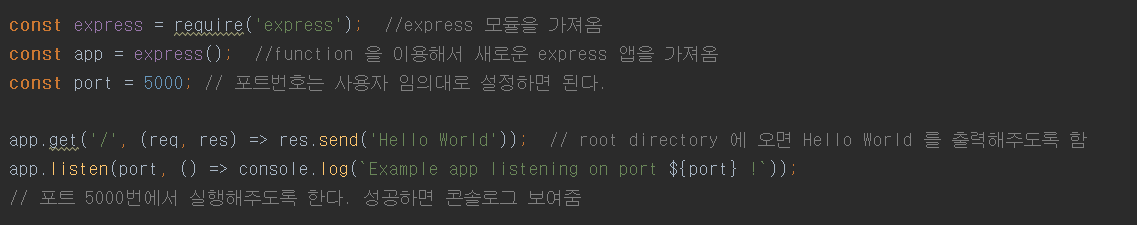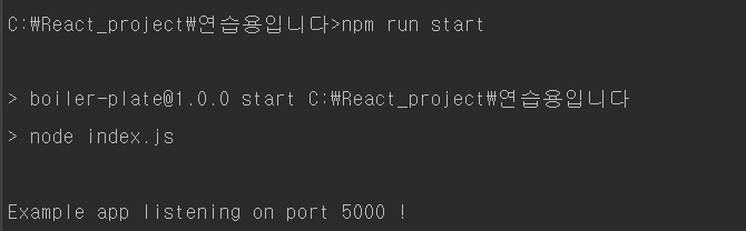 'node index.js' : node를 실행해주고 시작점은 index.js 다 라는 의미다.