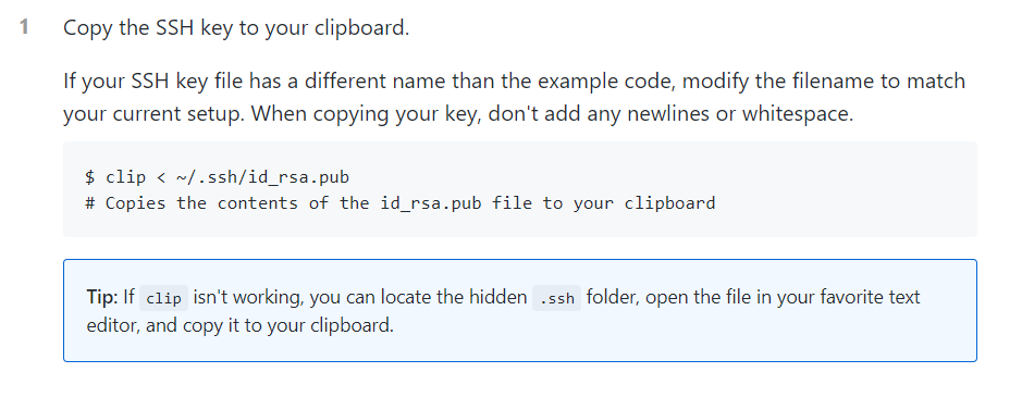 이 코드를 실행하면 자동으로 우리의 클립보드에 ssh public key가 복사된다.
