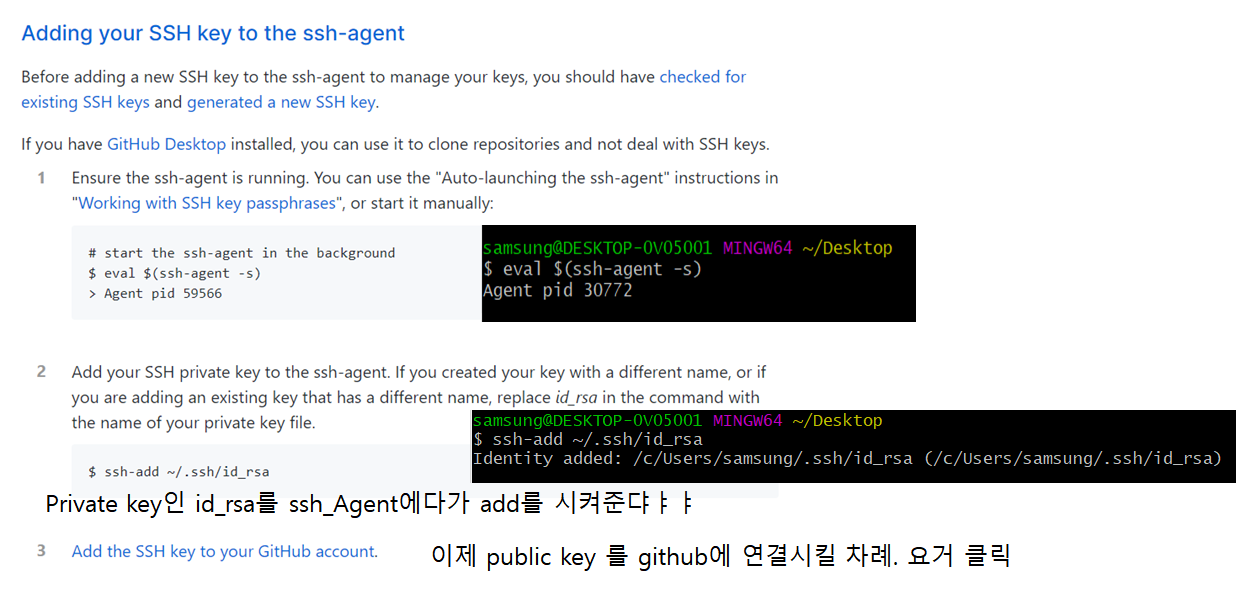 1번. ssh agent에 넣어주기전에, ssh agent를 background에서 켜줘야한다.