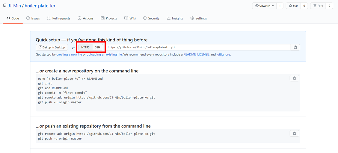 이제 여기서 https와 ssh 둘중 하나를 선택해서 해당 주소를 복붙하면 된다!