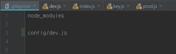 dev.js에는 URI가 담겨있기 때문에 git에 올라가면 안된다. 그래서 gitignore에 dev.js파일을 넣어주었다.