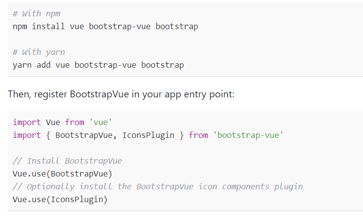 Bootstrap-vue사이트를 참고하면서 설치해 주기!