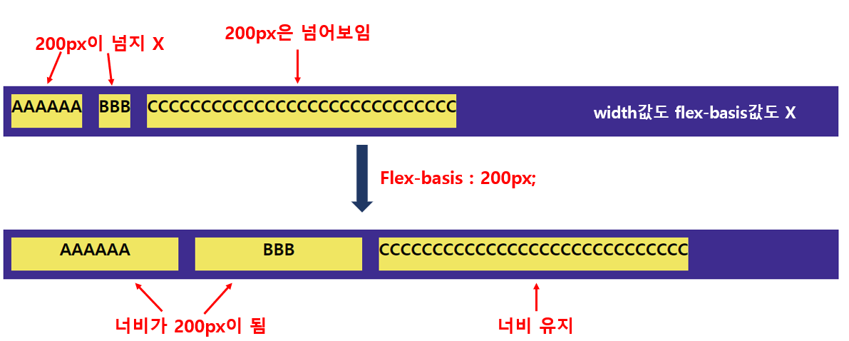 flex-basis가 아닌 width값을 200px로 준다면