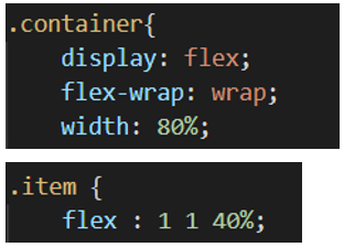 컨테이너의 너비가 80%이고 아이템의 basis를 40%로 주었기 때문에 한줄에 두개씩 배치하게 된다.