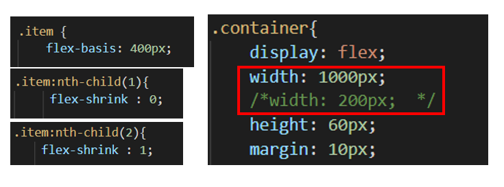 flex-shrink : 0이 적용된 첫번째는 컨테이너의 크기가 줄어들어도 flex-basis값을 그대로 유지한다.