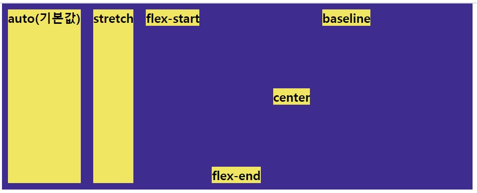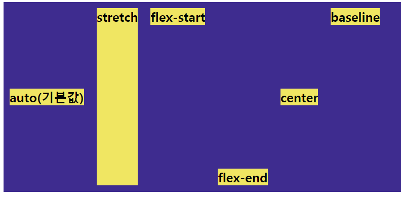 아이템의 align-self는 각각 아이템들의 수직축 방향 정렬이다.