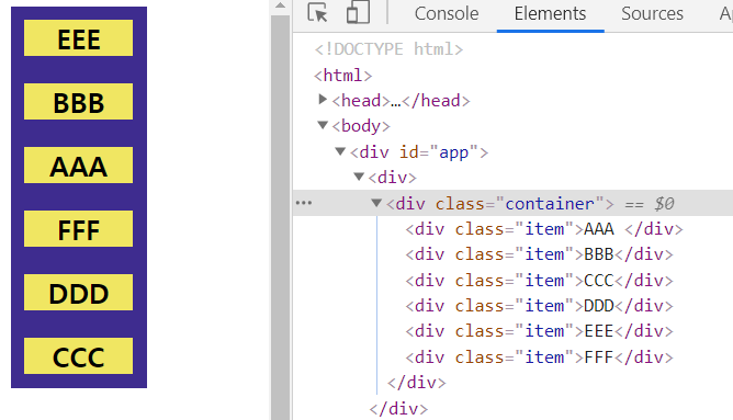 어떤 아이템이 위로 올라왔는지 육안으로 확인하기 어렵다. 그래서 transfrom 속성을 사용해서 확인하였다.