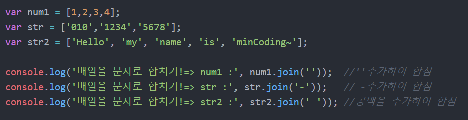 배열에 구분자를 추가하여 문자열로 만들어 준다.