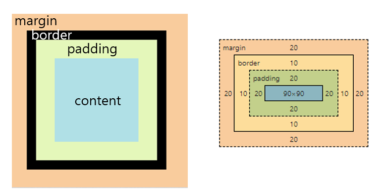 - content : 텍스트와 이미지등의 컨텐츠 내용이 표시되는 영역. with와 height로 크기를 지정할 수 있다. background 속성을 지정하는 경우 content영역과 padding영역에 표시된다.