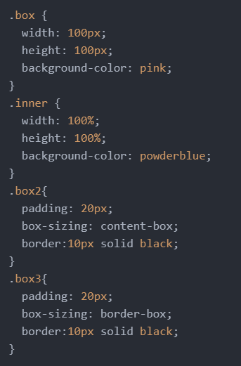 width와 height의 값을 100씩 줬을때, padding과 border를 포함하여 100 X 100을 유지한다.