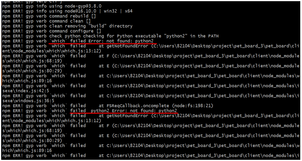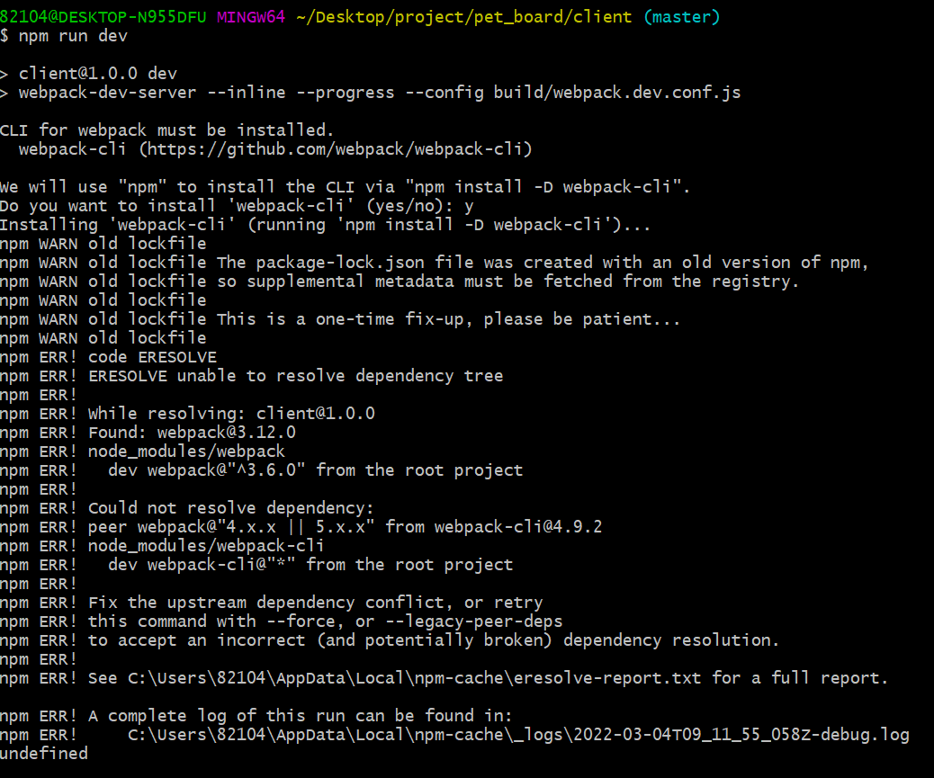 이거 해결한다고 webpack도 다시받고 윈도우용 빌드 툴 설치해야하나 해서