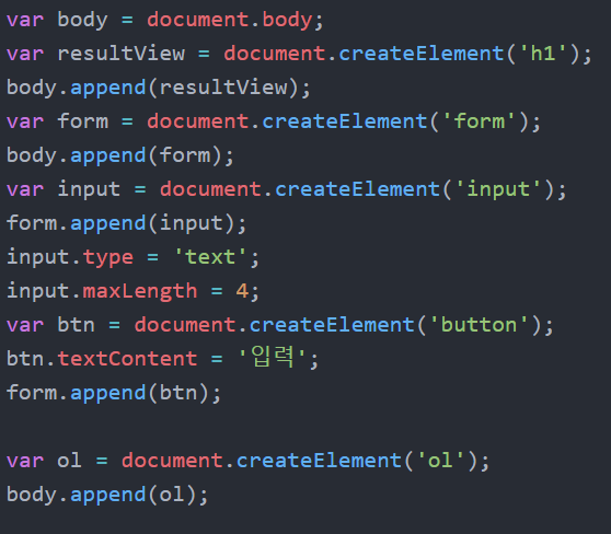 ol태그를 document.createElement()를 이용해 생성하고, 입력한 답이 틀리면 li태그를 같은 방법으로 생성해