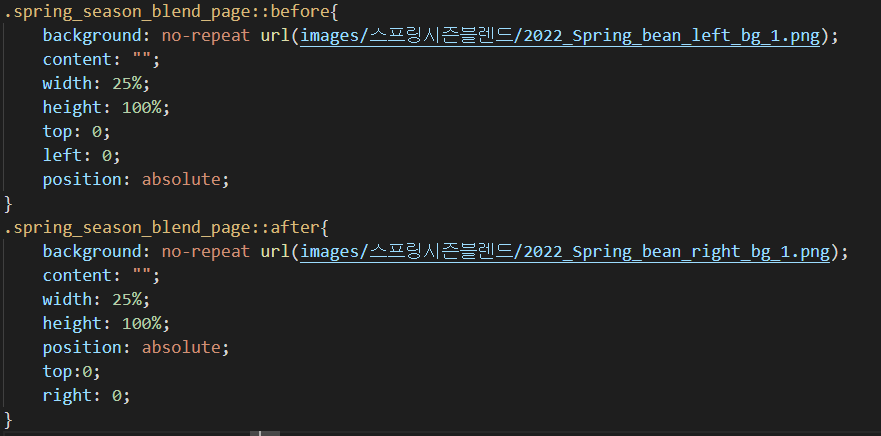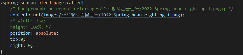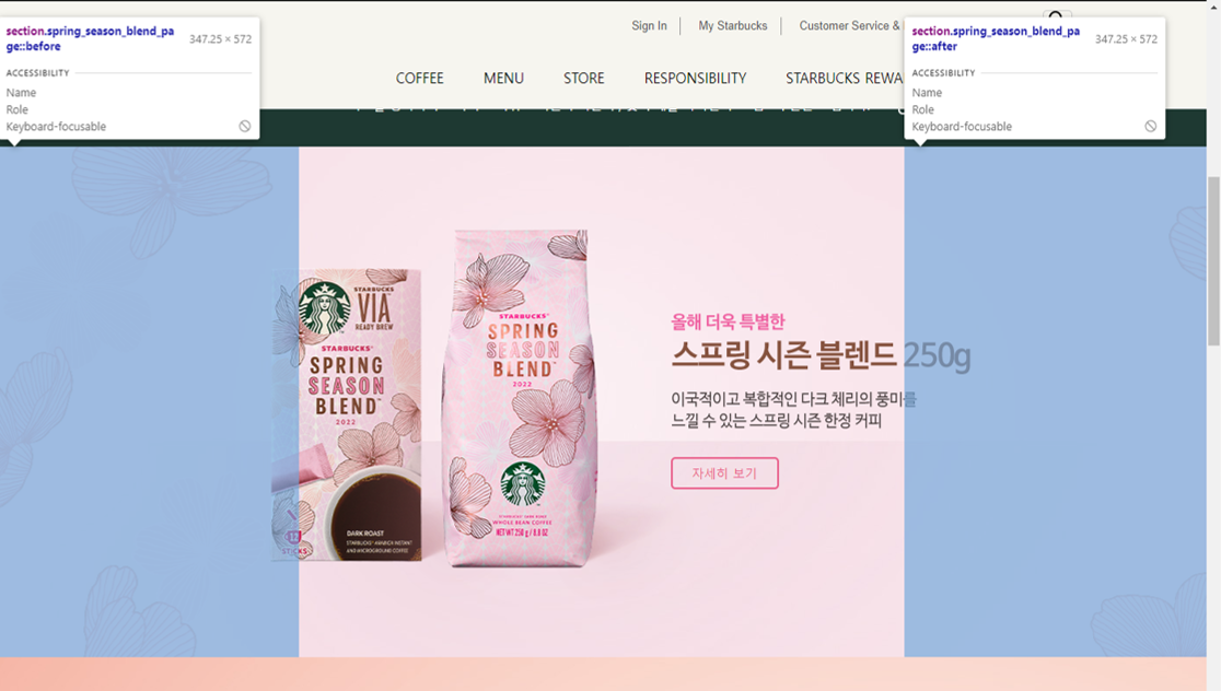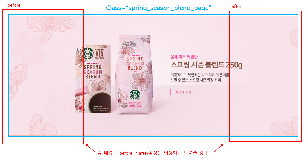 아래 사진은 spring_season_blend_page 클래스의 앞과 뒤에 가상 콘텐츠로 꽃 배경을 넣어 주었다.